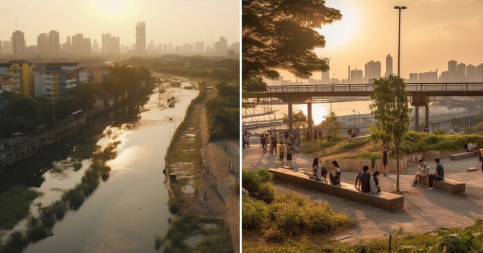 The Pasig River in the AI-made images is a lot greener and more picturesque than in real life and features parks, trees, and stalls where people could chill out, eat street food, bike, and work out.
